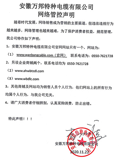 鄭重聲明:安徽萬邦特種電纜有限公司官方網站為:www_wanbangcable_com.wfjinhuigc.cn,除此之外無任何子網站或合作網站,其余均為假冒偽劣。電話:0550-7621728 13485756353 地 址:安徽省天長市滁州高新技術產業開發區經四路29號